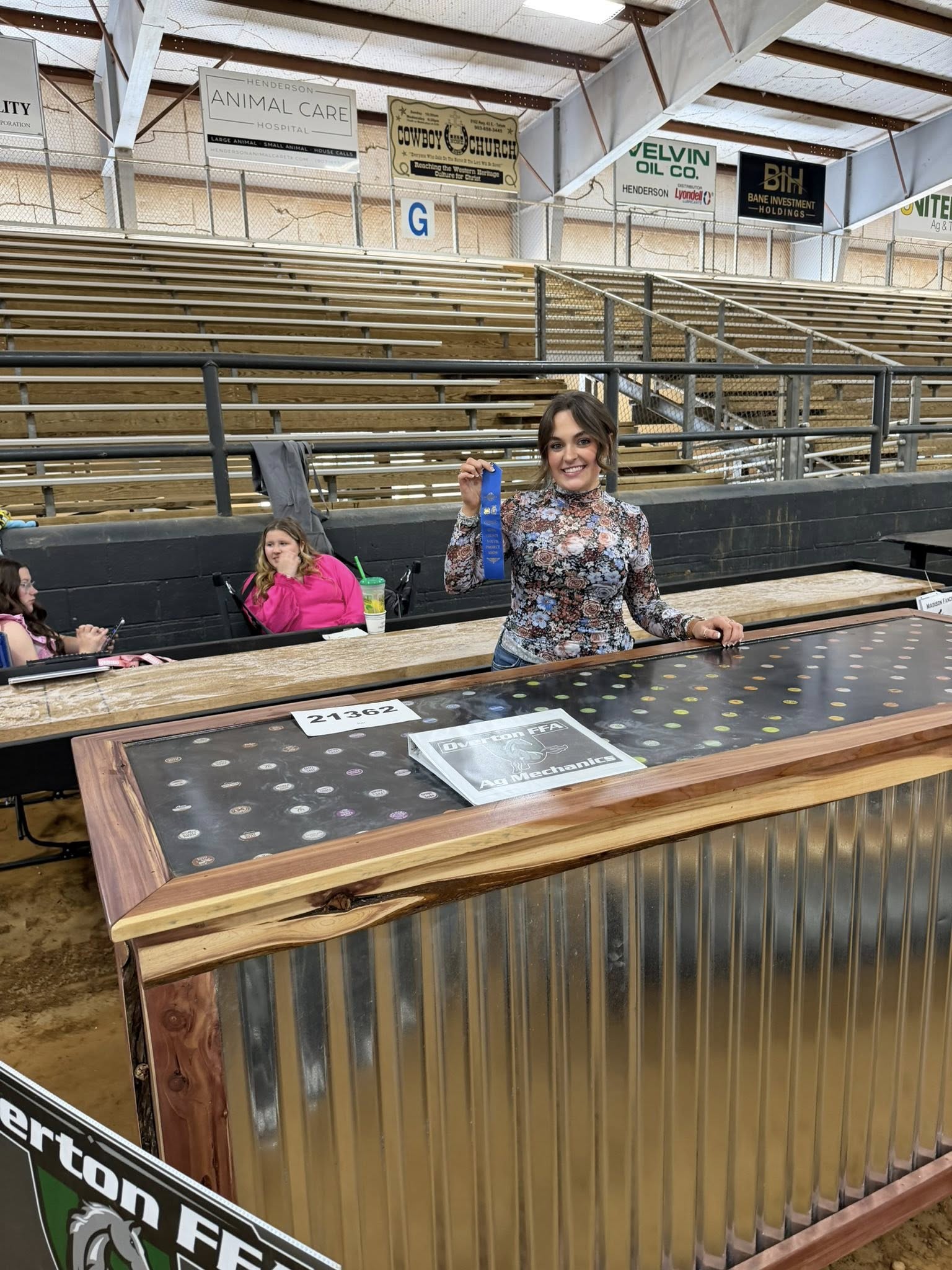 Overton students also made a strong showing in the Agricultural Mechanics competition. In fact, Overton ISD had the second-highest number of project entries of any district participating in the show. Of the 24 projects entered by our students, an impressive 21 earned blue ribbons, while the remaining three projects received red ribbons, reflecting the high quality of work and craftsmanship demonstrated by our students.